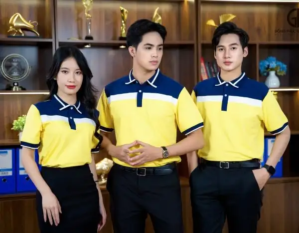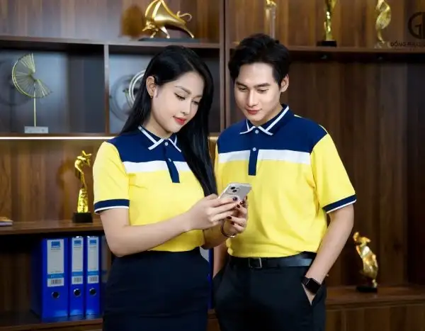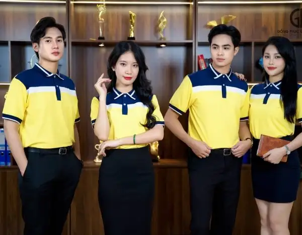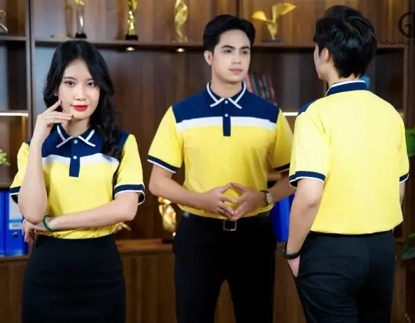 2. Bật mí cách phối áo đồng phục doanh nghiệp màu vàng phối cổ tím
