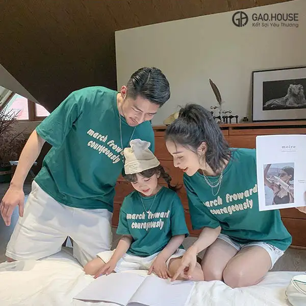 Mẫu áo gia đình màu xanh lá march forward là một trong những phong cách rất được lòng các gia đình Việt. Tone xanh ưu nhã kết hợp cùng phần chữ được in màu trắng tự nhiên vừa đủ để tạo nên điểm nhấn, vừa mang đến sức hút trọn vẹn cho người mặc. Form dáng T-shirt basic không quá bó sát, kết hợp cùng chất liệu cotton giúp mẫu áo trở thành lựa chọn hoàn hảo để mang đến sự thoải mái tuyệt đối cho các thành viên trong mọi hoạt động.