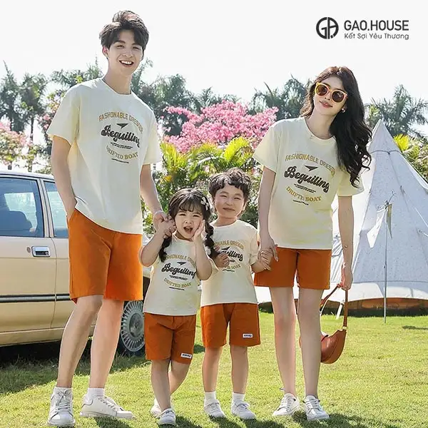 Mẫu áo đồng phục gia đình Geguiling của Gạo House là một trong những thiết kế đẹp, hottrend, cá tính và được đông đảo khách hàng yêu thích. Sản phẩm mang tone kem basic – nổi bật; hình in trước ngực đơn giản nhưng đủ để giúp người mặc tôn lên cá tính riêng. Sản phẩm được Gạo House may từ chất liệu cotton thiên nhiên mềm mịn, thoáng mát nên khi mặc sẽ rất thoải mái và dễ chịu.