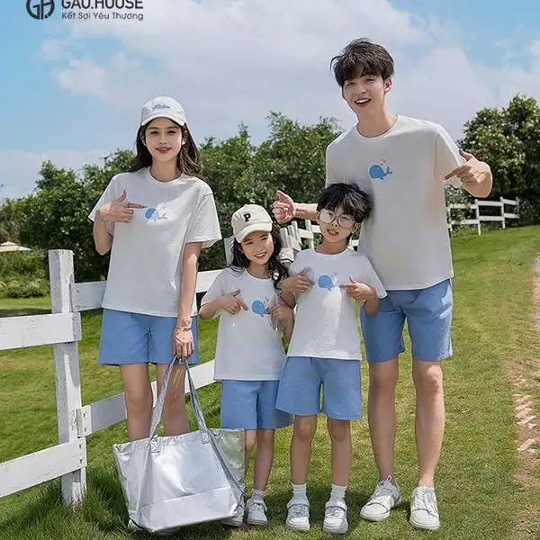 Áo gia đình đẹp cổ tròn “Cá Voi”