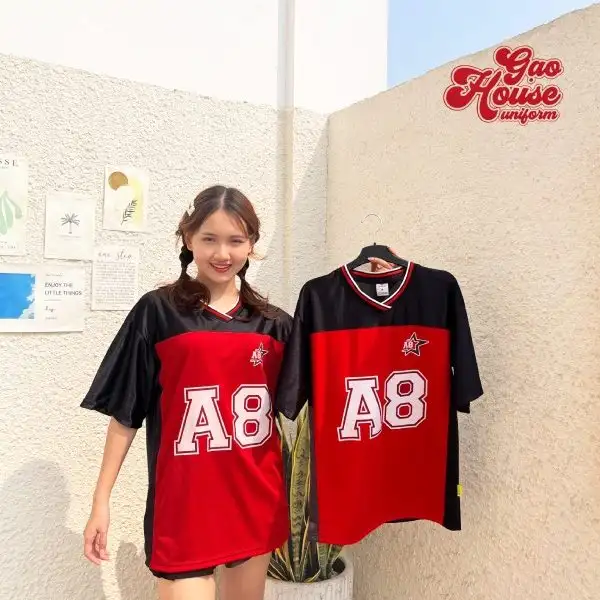 Khi cả tập thể diện mẫu áo đồng phục lớp A8 cổ V tone đen phối đỏ không chỉ tạo dựng được sự đoàn kết mà còn tạo ra tính thống nhất giữa các thành viên. Item được thiết kế với form dáng Baseball thể thao năng động, nhằm tạo nên nguồn cảm hứng mới cho các bạn học sinh. Hình in trên áo cũng được tô điểm ấn tượng với những con số riêng, giúp cả lớp trở nên khác biệt. Đặc biệt, chất liệu vải may áo lớp cũng được lựa chọn loại vải cao cấp, thấm hút tốt mang đến sự thoải mái sau mỗi lần sử dụng.