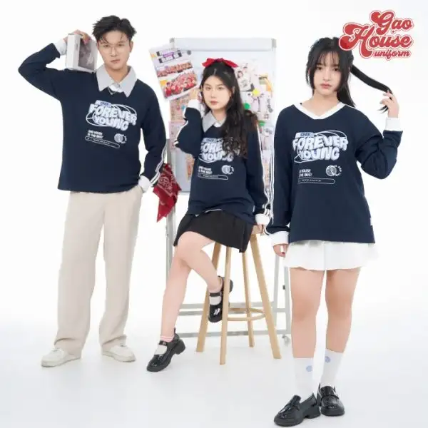 Đồng phục học sinh mùa đông màu đen “Forever Young” toát lên vẻ thanh lịch và bí ẩn. Gam màu đen cổ điển kết hợp với thiết kế hiện đại tạo nên một phong cách thời trang độc đáo. Áo được may từ chất cao cấp không chỉ giữ ấm hiệu quả mà còn mang đến cảm giác mềm mại, thoải mái. Hình in “Forever Young” nổi bật ở phía trước ngực như một lời nhắc nhở về tuổi trẻ sôi động và những ước mơ không ngừng lớn lên.