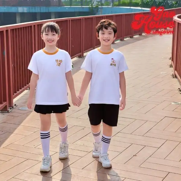Đồng phục mầm non được ví như “người bạn thân thiết” giúp trẻ nhỏ luôn tự tin, năng động suốt cả ngày dài. Hiểu được ý nghĩa đó, Gạo House đã cho ra mắt mẫu áo mầm non màu trắng phối cổ tròn line vàng cam trẻ trung, năng động. Item được may từ chất vải thun Cotton cao cấp, co giãn 4 chiều, thấm hút tốt mang lại sự thoải mái, dễ chịu và đặc biệt là an toàn, lành tính với làn da của trẻ. Trên áo được in logo gắn liền với sự yêu nước “Hà Nội 70 năm giải phóng”, “Việt Nam trong tim tôi”,… Mẫu áo chắc chắn mang đến ý nghĩa đặc biệt, truyền tải được ý nghĩa tích cực đến cho các em nhỏ.