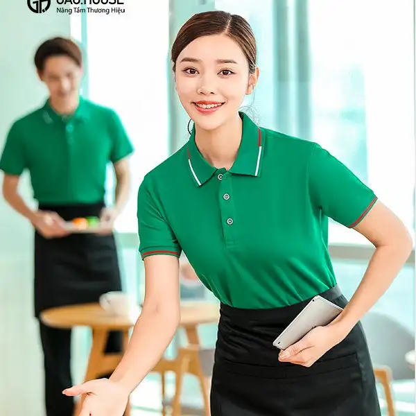 Đồng phục nhà hàng là mẫu áo được yêu thích nhất trong thời gian gần đây. Áo có form dáng đẹp, chuẩn size nên rất dễ phối đồ. Bạn có thể mix áo với tạp dề, mũ lưỡi trai trông vừa năng động lại phù hợp với môi trường đặc trưng của nhà hàng. Sức hút của mẫu áo đến từ chất liệu thiên nhiên mềm mịn, thoáng mát, thấm hút mồ hôi tốt và an toàn với mọi làn da. Với mẫu áo này, nhân viên phục vụ nhà hàng có thể thoải mái làm việc, vận động mà không cần lo bị nóng hay bí bách.