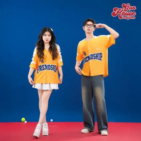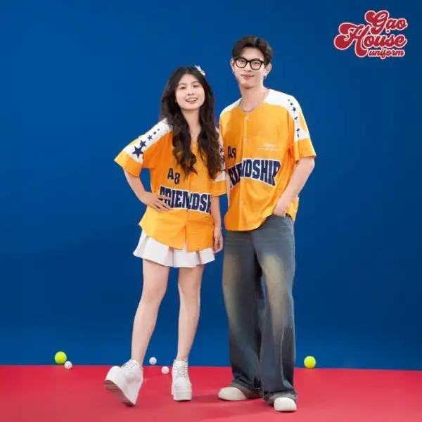 Lấy cảm hứng từ những kỷ niệm gần gũi, kí ức đẹp đẽ của tuổi học trò, pha chút nổi loạn của thế hệ học sinh hiện nay. Gạo House đã thêm bài BST áo lớp mẫu đồng phục sơ mi in hình 3D sắc nét, nổi bật. Item được tô điểm với tone màu vàng cam tươi mới, phối line trắng ở cầu vai tạo nên sự khác biệt. Chất liệu vải cũng được may từ vải thun mè cao cấp, tạo nên sự thoải mái, dễ chịu giúp các bạn học sinh luôn hết mình trong những hoạt động tại trường/ lớp.