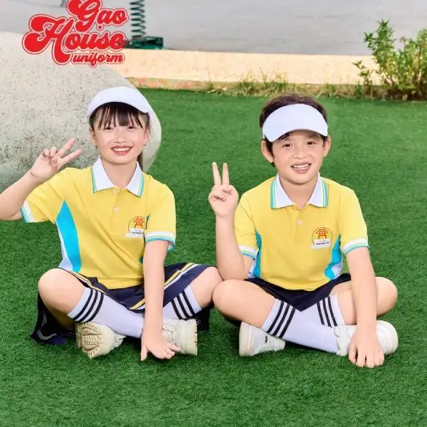Mẫu áo đồng phục mầm non có cổ màu vàng phối line xanh – trắng là item hoàn hảo giúp các bé thêm gắn kết, gần gũi nhau hơn. Sắc vàng trên áo mang đến cảm giác tươi mới, là biểu tượng của sự sáng tạo, niềm vui, Gạo House đã điểm nhấn thêm chi tiết line trắng – xanh nhằm tạo ra vẻ đẹp độc đáo, thu hút hơn trên mẫu áo. Ngoài ra, chất liệu vải trên áo mầm non cũng được Gạo House chú trọng may từ loại vải thun Cotton 100% cao cấp, co giãn 4 chiều, thấm hút tốt, đảm bảo sự thoải mái, dễ chịu cho bé suốt cả ngày dài.